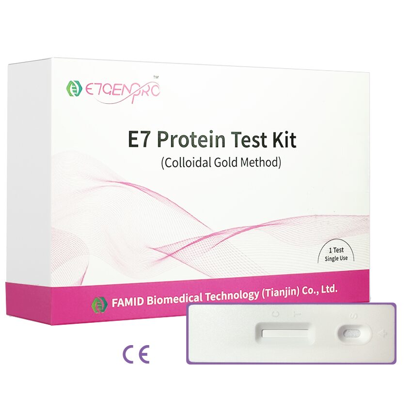 - E7 Protein Test jest szybkim, kasetkowym testem przesiewowym wykrywającym stany przedrakowe szyjki macicy o małym i dużym nasileniu